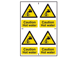 Scan Caution Hot Water - 4 PVC Signs 100 x 100mm