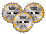 The 3 Piece DT1963 Construction Circular Saw Blade Pack contains the following: