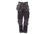 DEWALT Harrison Pro Stretch Trousers with holster pockets. These slimmer-fit trousers have 4 stretch inserts in key areas for flexibility and comfort. Cordura® reinforced knee pads and lower hems provide increased durability.