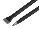 These Roughneck Digging Bars have a drop-forged steel construction with heat-treated working areas, and a black finish with polished tips. They have a chisel blade for general prying and breaking, and a pointed tip for breaking stone and concrete.