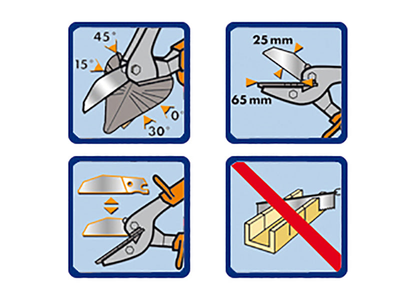 The Edma Multicoup Extra Universal Cutting Tool also known as mitre shears. With variable angle cuts. Eliminates the need for a mitre box. Fitted with ergonomic, soft grip handles for increased comfort. For use on decorative moulding, wooden skirting boards, rubber seals and PVC section.