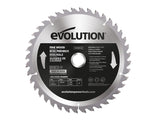 Evolution Fine Wood Mitre/Table Saw Blade for perfectly smooth finishing cuts in wood. Ultra-tough tungsten carbide teeth with ATB pattern and advanced face grind for a beautifully smooth cut with no splintering. The hardened steel body with expansion slots ensures this blade runs true and cuts accurately.