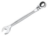 The Facom 467B Series Combination Ratcheting Spanners feature a reversible ratchet system incorporated within a compact ring head and a fixed open end. The wrench is angled at 15° and has a fine ratchet system which allows a 5° working arc. The spanners have a satin chrome finish. The ring end features the innovative Ring Stop system that prevents fasteners from going through or slipping off the wrench whist the open end features anti slip jaw design preventing slippage. Compact I-Beam shaft profile ensures comfort and allows the user to apply higher torque for longer periods.