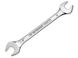These Facom 44 open-end wrenches/spanners come in metric sizes and are finished in satin chrome, which is both attractive and hard-wearing. The wrenches are double-ended with two different, fixed size heads. The wrench is flat, with heads slightly tilted away from the axis of the handle. This allows a greater range of movement, making them ideal for use in confined spaces.