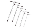 The Facom 84TC.JE5 84TC.JE5 Set of 5 'T' Spinner Hexagon Keys, each with 3 Hexagon ends and a burnish-tipped chrome finish.