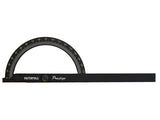The protractor features laser etched graduations from 0-180°. It is used to determine existing angles, as well as creating new angles, setting bevels and transferring angles from one surface to another. A knurled thumb-nut allows the rule to be locked at a chosen angle.