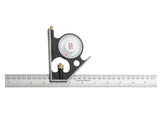 This highly versatile combination square has all the uses of a standard combination square. It reads any angle instantly, checks through horizontal and vertical lines, and measures 0-90° in any quadrant.