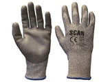 These Scan Grey Polyurethane Coated Cut 5 Liner Gloves are highly cut, tear and puncture resistant, with excellent grip and flexibility. Their palms and fingers are coated with Polyurethane and have a knitted, seamless liner.