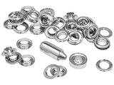 Rapid Grommets are ideal for leather, textiles and plastics and when a large diameter hole or repair is needed. Made from high grade aluminium, each eyelet has 2 metal parts which are placed in pre-cut hole and squeezed together using the supplied 2 piece metal anvil.