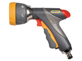 The Hozelock 2694 Multi Spray Gun Pro combines an ultra tough zinc alloy body with comfortable soft touch ergonomics and a range of genuinely useful, class leading spray patterns.