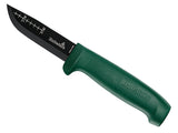 The Hultafors OK1/OK4 Outdoor Knives have a scandi grind and are made from Japanese knife steel 3.0mm carbon steel that has been hardened to 58–60 HRC. It has a rust protective, electrophoretic deposition coating to withstand corrosion. The ground spine of the blade is designed for starting a fire with a fire starter and there is scale engraved on blade for optimised outdoor usage.