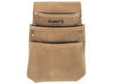 The Kuny's drywall Pouch with no hammer holder loop. Ideal for use when fitting plasterboard as there are no hard surfaces to cause damage. Made from durable split grain leather.