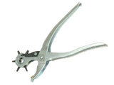 Features six different punch sizes. Easily select your punch with the rotating drum. Built to last, with a robust construction and rust-proof finish. Fitted with a strong return spring for easy operation. Made from strong but lightweight carbon steel. With zinc-plated handles with detailing for added grip. Ideal for making holes in soft materials, especially leather.