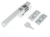 Surface fixed handle incorporating the lock mechanism. Locks both in closed and ventilation positions and will fit both right and left-hand opening windows. This lock is suitable for narrow framed windows.