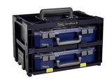 The Raaco CarryMore 80x2 Storage System consists of the CarryMore 80 black, with 2 CarryLite 80 4x8-9 Assorters. Equipped with ergonomic handle and connecting lock-mechanism to link together several units. Retainers stop the CarryLite boxes from falling out during transportation. Made of polypropylene and copolymer (PP and CO).