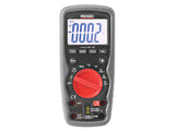 The multimeter has a double moulded water-resistant (1m) IP67 housing. It is also drop-proof and perfectly suitable for use in the harshest job site conditions. An extra large backlit LCD display provides easy and clear readings.