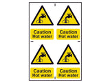 Scan Caution Hot Water - 4 PVC Signs 100 x 100mm