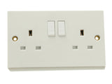SMJ 13A Switched Single or Double Socket made from white plastic, suitable for internal use.