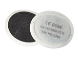 Pair of P3(R) Nuisance Odour Filters for AIR STEALTH half mask. The Twin HEPAC* pleat encapsulated design provides 99.99% filtration of airborne particles and aerosols at 0.3 micron and above.