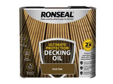 Ronseal Ultimate Protection Decking Oil provides superior, natural looking protection, for a longer lasting finish. The unique formula penetrates deeper into the wood to provide increased durability. Providing a lightly tinted finish it will give double the weather resistance and foot traffic protection versus standard decking oils. Unique, new to the market, water-based Linseed Oil technology, colours and waterproofs your deck in one easy step.